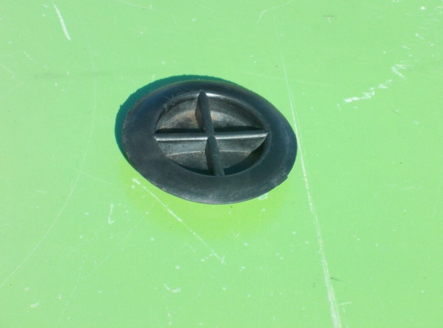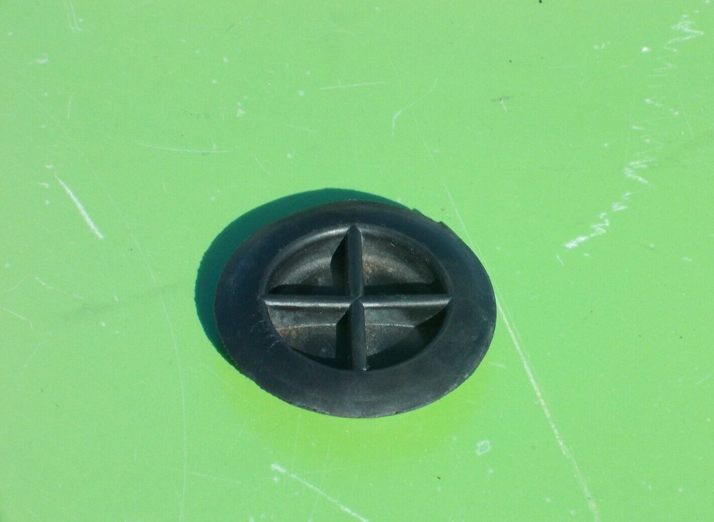 Genuine OEM rubber grommet for floor pan drainage.